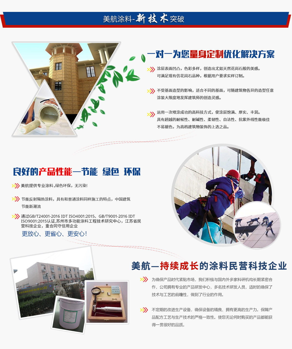 太倉市美航涂料有限公司是一家集高端涂料產品和工業新材料的研發、生產、加工、銷售和服務一體的現代化企業。公司創建于2005年06月,立足江蘇太倉,服務大家。分別在重慶、浙江金華、廣東東莞、湖南郴州設有工程研發打樣中心、加工中心和服務中心。公司以質量為企業生命,全員參與通過ISO9001:2008質量管理體系認證和ISO14001:2004環境管理體系認證。